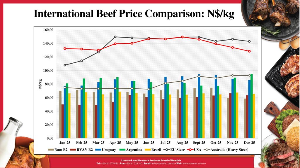 Uncategorized February 4, 2026 Posted by: Admin NECFU Comments: 0 Likes: 0 0 Email address: Subscribe Leave this field empty if you're human: Share Related posts Weekly Beef Consumer prices March 26, 2026 Posted by: Admin NECFU Minister of Agricultural Inge Zaamuani-Kamui thanks the Industry for it’s pledge to the newly-Lauched Foot-and-mouth disease (FMD) support fund. The fund raised N$ 11 Million in pledge. March 3, 2026 Posted by: Admin NECFU NECFU participating in the Strategy for Transformation Workshop (STAS).. December 4, 2025 Posted by: Admin NECFU Farmers Unions Leaders Engaging the Hon Minister & Deputy Minister of MAWFLR November 12, 2025 Posted by: Admin NECFU AgriOutlook 2025 | Shaping the Future of Namibian Agriculture November 6, 2025 Posted by: Admin NECFU AgriOutlook Conference |Namibia Agricultural Union October 15, 2025 Posted by: Admin NECFU Harvesting the Future October 2, 2025 Posted by: Admin NECFU Harvesting the Future October 2, 2025 Posted by: Admin NECFU Namibia officially launching and ratifying the strategy for the Transformation of the Agri-food Sector (STAS) September 12, 2025 Posted by: Admin NECFU Veterinary Services rolls out September 12, 2025 Posted by: Admin NECFU Leave your comment Required fields are marked * Click here to cancel reply. Post comment